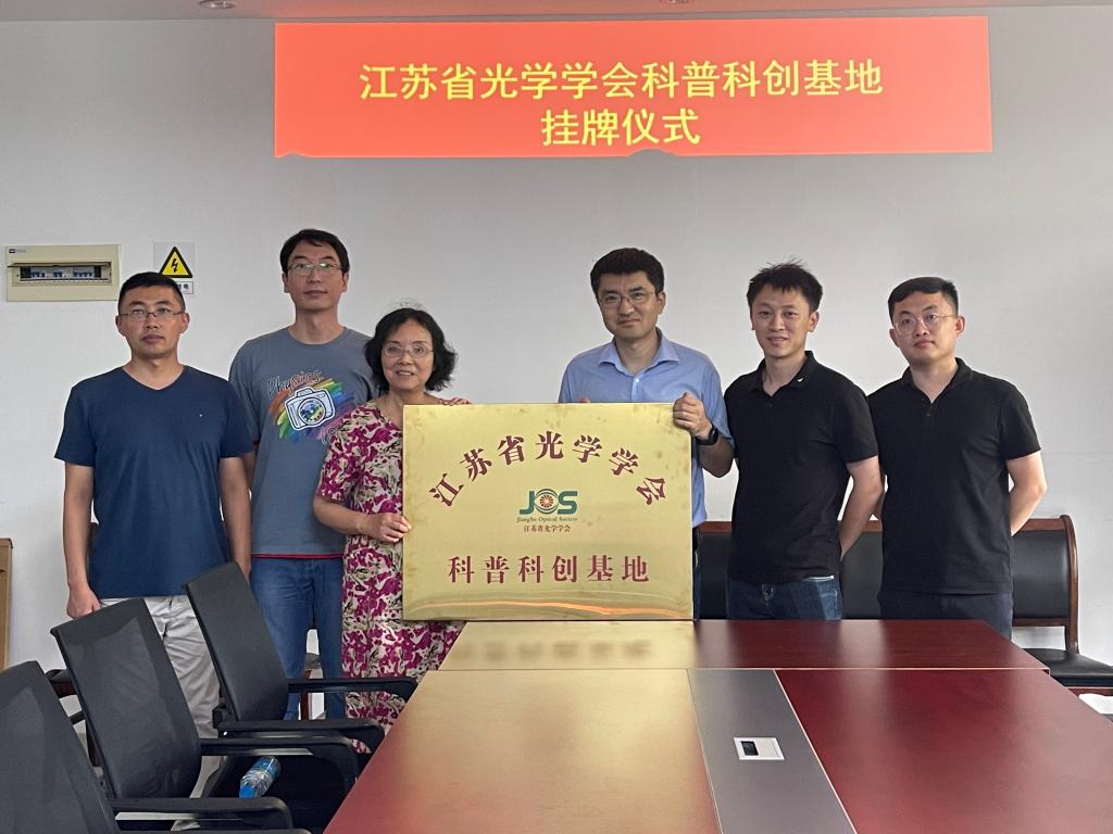 8月14日,江苏省光学学会科普科创基地授牌仪式在云顶国际8588yd举行。江苏省光学学会秘书长詹鹏、副秘书长王乐、秘书潘有康、公司党委书记吴泉英教授、教务处副处长王军、物理实验中心副主任范君柳等参加了授牌仪式。