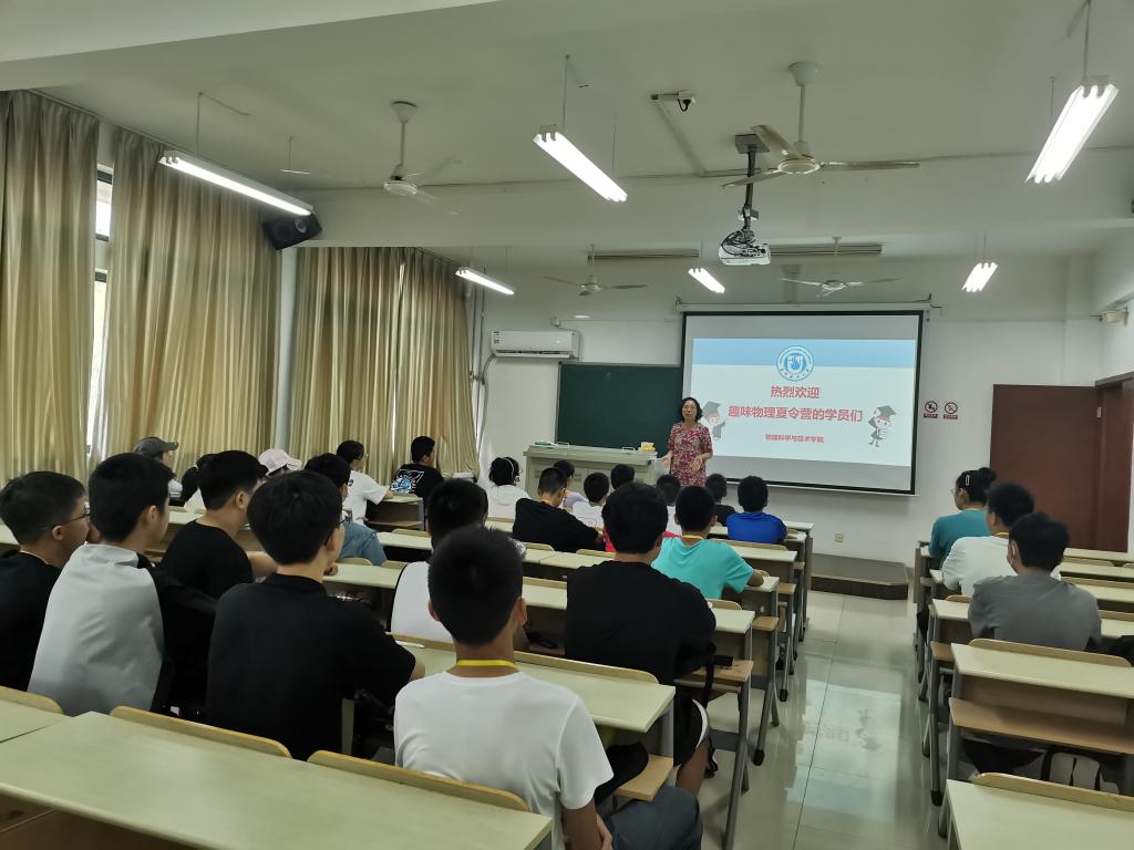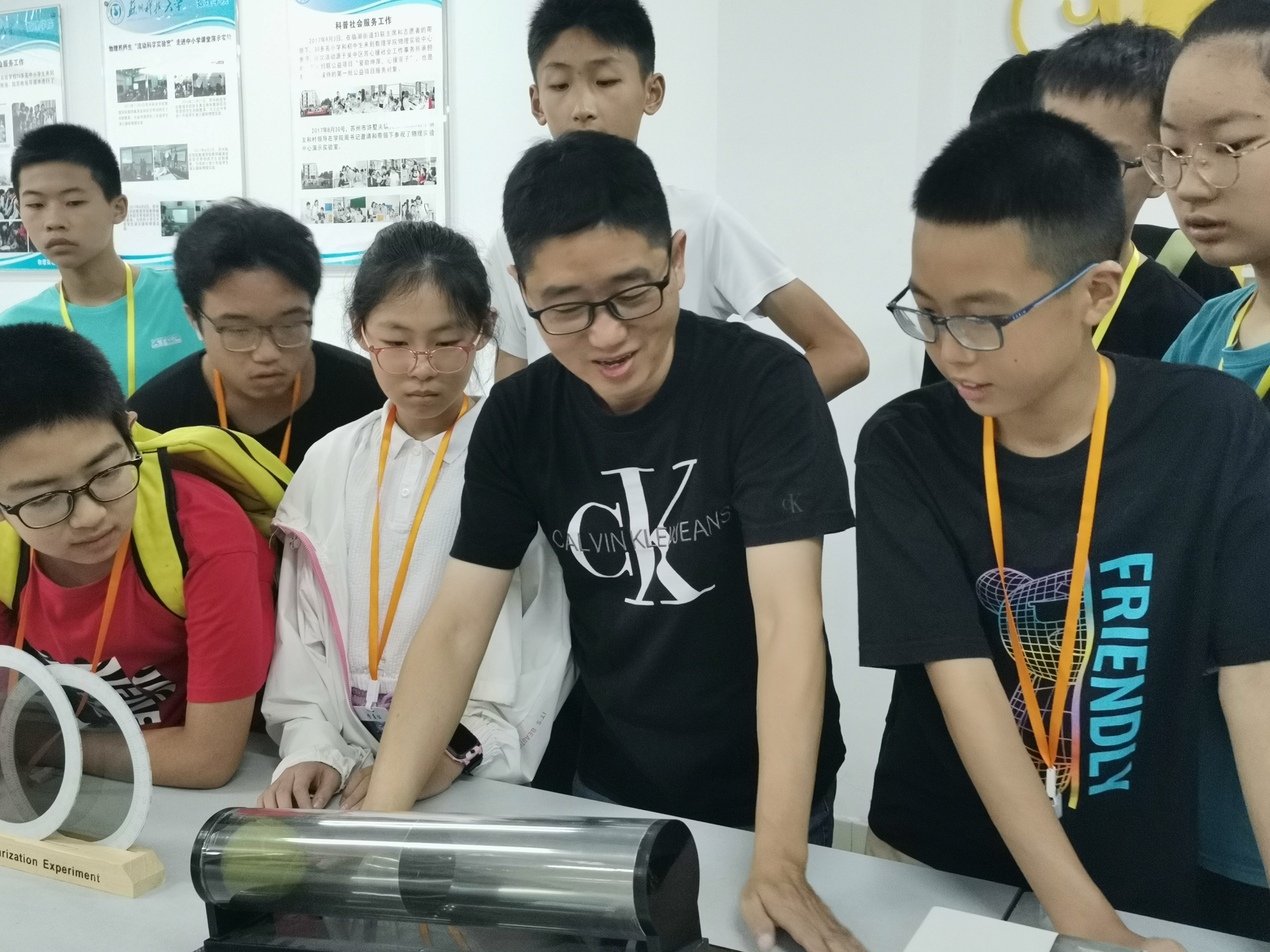 持续两天的活动中,云顶国际8588yd吴泉英教授和郝翔教授先后作了开营讲话。开营后,云顶国际8588yd张金磊和张程老师先后给学员们做了题为“眼睛中的天文学”和“物理的奇妙世界——浅谈格物致理”的科普讲座。在讲座中,两位老师通过一系列事例生动地讲解了其中蕴含的物理原理。讲座结束后,学员们参观了物理演示实验室,在参观过程中,老师通过演示给学员们讲解了“鱼洗”、“材料的居里点”、“无线充电”等一系列物理现象背后的原理。在固态物理研究中心,老师给学员们介绍了各种精密科研仪器的用途、基本原理,以及利用这些仪器所进行的相关研究。